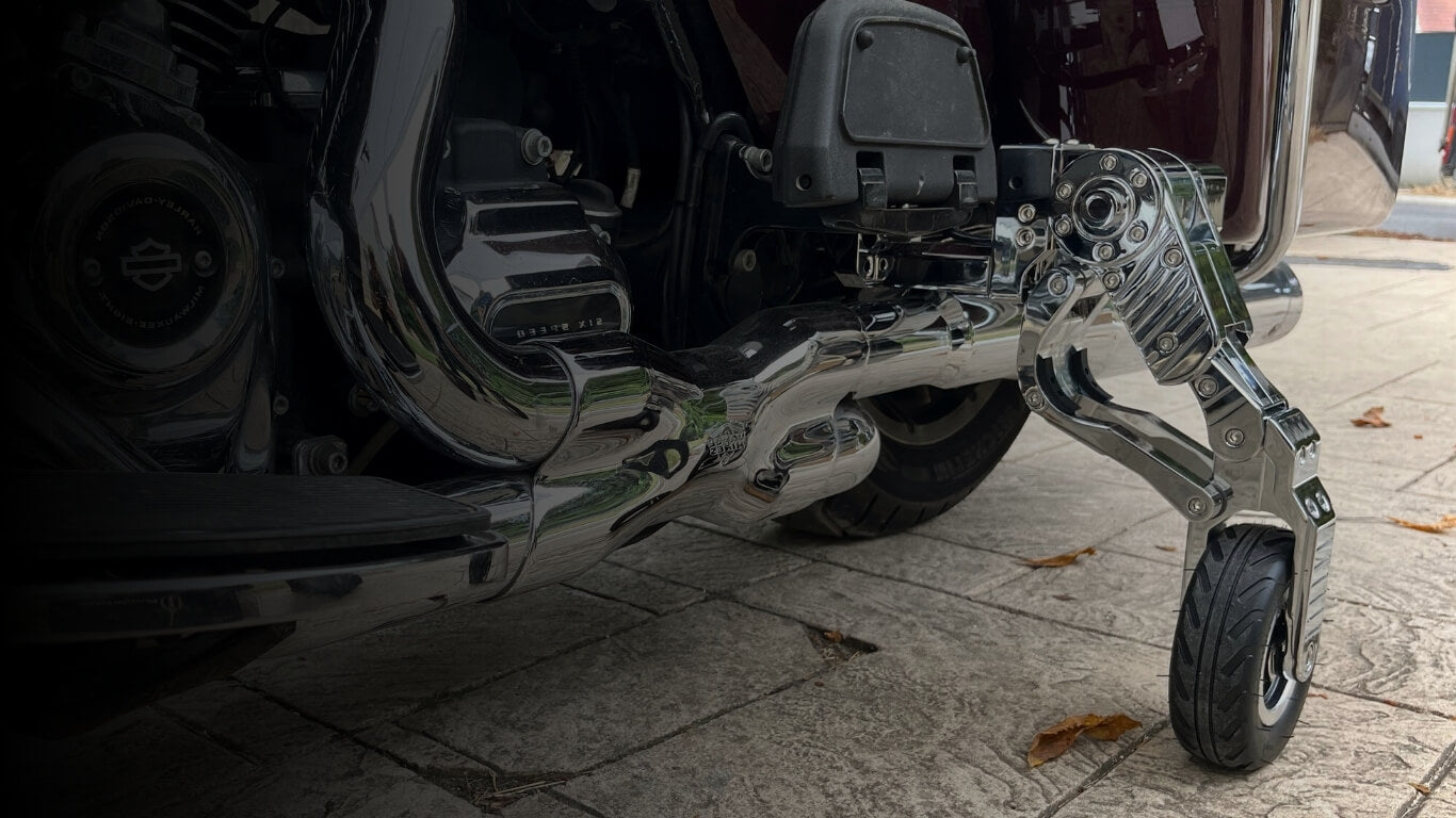 Nos trains d’atterrissage sont compatibles avec la majorité des motos lourdes de type touring : Honda Goldwing, Harley-Davidson Touring, BMW R18 / K1600, Indian, etc.